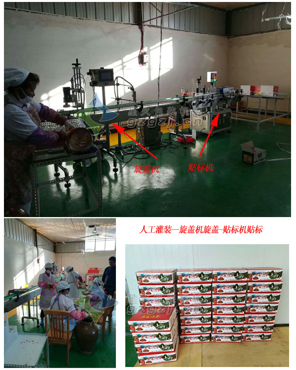 賓川匯民是一家專業(yè)生產(chǎn)韭菜醬腌菜的企業(yè),為了提高產(chǎn)量,經(jīng)過(guò)了解選購(gòu)了我們的真空旋蓋機(jī)和自動(dòng)貼標(biāo)機(jī),由人工灌裝腌菜后,交由旋蓋機(jī)進(jìn)行真空旋蓋再貼標(biāo),提高了一半的生產(chǎn)效率并節(jié)省了人力開(kāi)支,旋蓋機(jī)、貼標(biāo)機(jī)使用一段時(shí)間之后,該企業(yè)負(fù)責(zé)任了解全自動(dòng)化生產(chǎn)的優(yōu)勢(shì);打電話又咨詢訂購(gòu)了醬料全自動(dòng)灌裝機(jī),組成了全自動(dòng)韭菜醬腌菜包裝生產(chǎn)線;可以自動(dòng)完成整個(gè)包裝流程,既能節(jié)省了企業(yè)的人工成本,又可以減少食品在包裝過(guò)程中遭受污染的可能,提高食品包裝的安全性和衛(wèi)生性