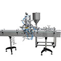 雙頭配線臥式攪拌醬料灌裝機(jī)主要是針對粘稠并帶有顆粒且濃度較大的醬狀物料..