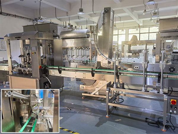 1L桶全自動灌裝生產(chǎn)線的工作模式,主要依賴于PLC可編程軟件設(shè)定,操作人員需要提前將所需灌裝的參數(shù)規(guī)格、下料速度、重量多少、壓蓋力度等內(nèi)容設(shè)定在顯示屏幕當(dāng)中,并將灌裝的醬料備至在料箱內(nèi),啟動顆粒醬灌裝設(shè)備,攪拌系統(tǒng)將會按照設(shè)定的規(guī)格進(jìn)入投產(chǎn)模式,攪拌系統(tǒng)內(nèi)部的螺旋攪拌配置,會持續(xù)不斷的對其進(jìn)行正反雙向攪拌,防止顆粒物料的沉淀,保持醬料的均勻性,軟件輸出將會按照程序設(shè)定,對容器進(jìn)行自動進(jìn)瓶、自動灌裝、自動出瓶等操作,1L桶全自動灌裝生產(chǎn)線的內(nèi)部設(shè)定了活塞式定量配置,它能夠精準(zhǔn)、快速地將顆粒醬料以均勻輸出模式送入容器內(nèi),隨后,顆粒醬灌裝設(shè)備則會進(jìn)入上蓋、壓蓋的后續(xù)操作。