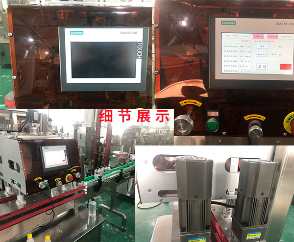 噴霧瓶自動旋蓋機適用于不同的瓶子的噴霧蓋旋蓋,灌裝頭插入瓶口灌裝功能,自動上瓶,上蓋,自動旋蓋,機器速度無級可調,適用不同產品的灌裝要求。全自動觸摸屏操作設計,材料,制造,裝配,調試符GMP要求整機凡接觸物料及某些相關部位均采用優(yōu)良不銹鋼制作整機運行平穩(wěn)可靠,無噪音和其它污染。需要清洗部位均選用快換裝置,拆洗方便臺面防水設計,方便用水清洗。